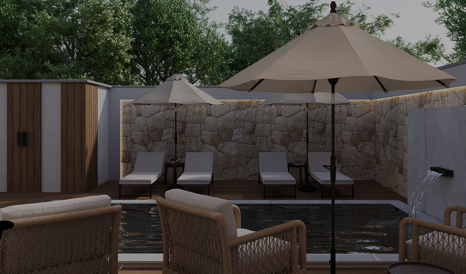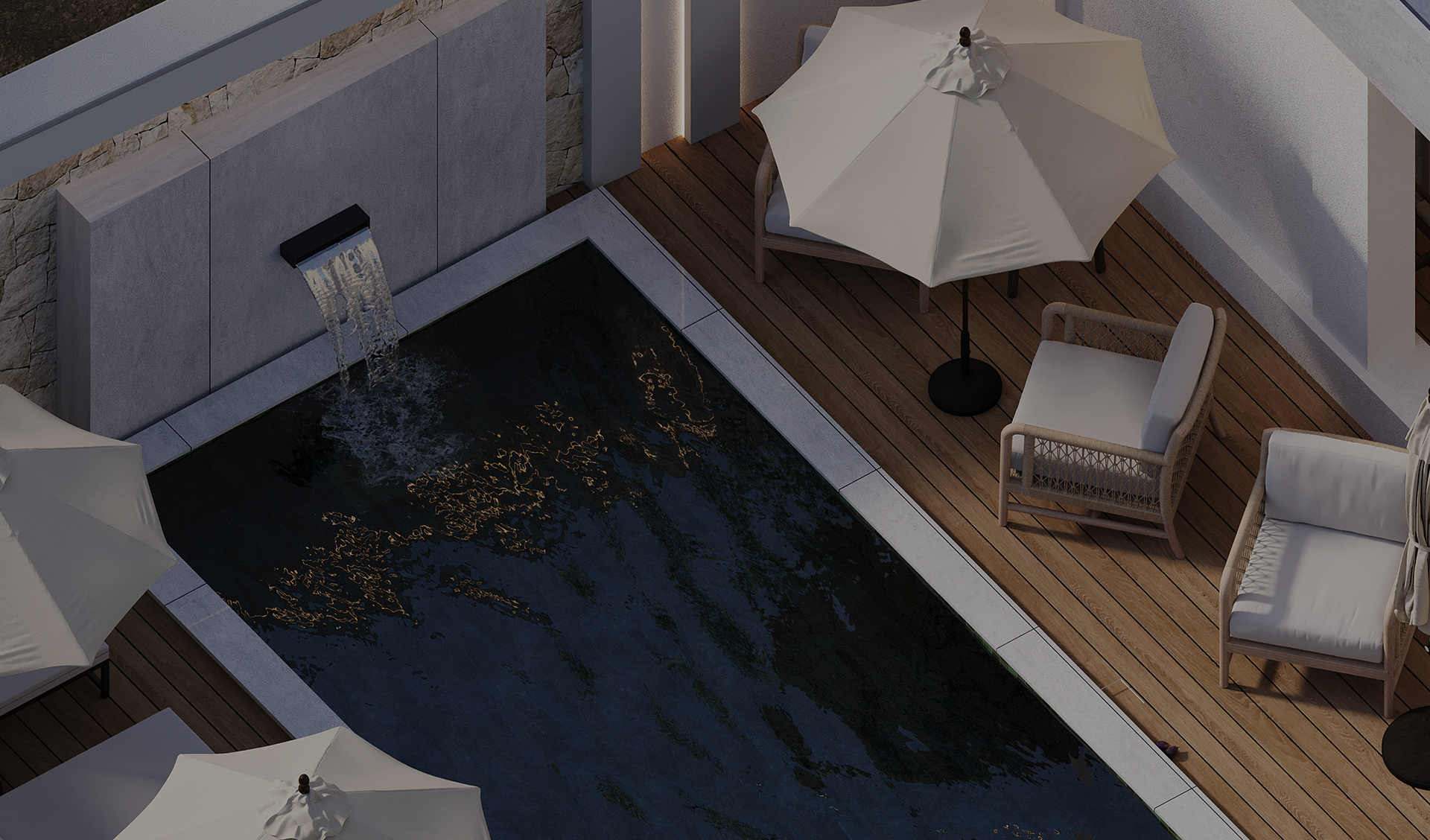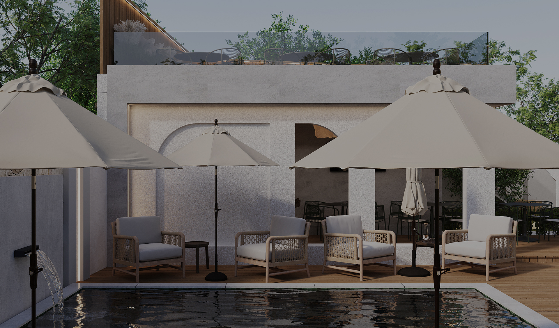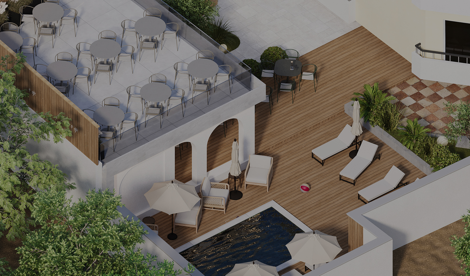 Një hapësirë relaksi dhe mikpritjeje, ku dizajni bashkon elementët natyralë me elegancën bashkëkohore. Projekti përfshin një tarracë me bar & pool zone, e menduar si një “oaz” urban që ofron qetësi dhe estetikë në çdo detaj.